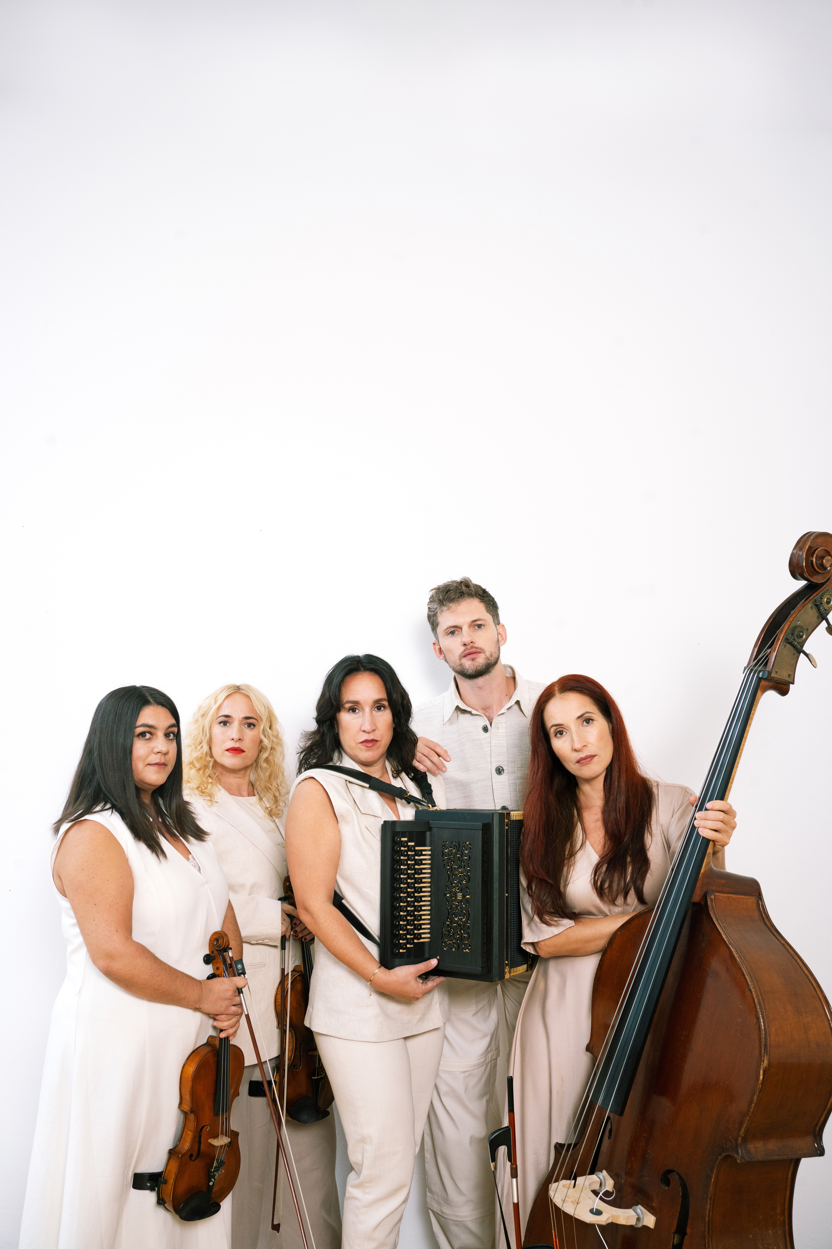 „Alma“, das sind: Julia Lacherstorfer, Evelyn Mair, Matteo Haitzmann (allesamt Geige), Marie-Theres Stickler (diatonische Harmonika), Marlene Lacherstorfer (Kontrabass).